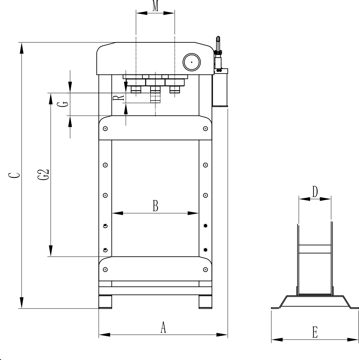 Изготовленный для выдающейся производительности, пресс SP-50EAM представляет собой мощное оборудование, специально разработанное для обслуживания грузовой автомобильной техники. Его сварная рама из толстостенного листового металла с широким проемом 750 мм обеспечивает работу с крупными деталями, открывая новые возможности. Гидравлическая система промышленного уровня, оснащенная высококачественным насосом, гарантирует эффективную работу пресса.